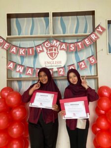 “Mari bersama kita ciptakan generasi unggul yang percaya diri dalam berbahasa Inggris, dan bangga dengan siswa yang berani serta aktif untuk belajar speaking class.”